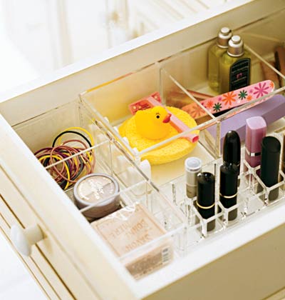 Triati produsele pe care le folositi in mod normal si puneti-le pe toate intr-un singur loc. Produsele de machiaj si coafat intr-un loc, cele pentru igiena dentara intr-un altul. Un sertar in dulap sau intr-o cutie de depozitare, acestea sunt locurile ideale pentru a stoca lucrurile si pentru a le gasi apoi la fel de usor.