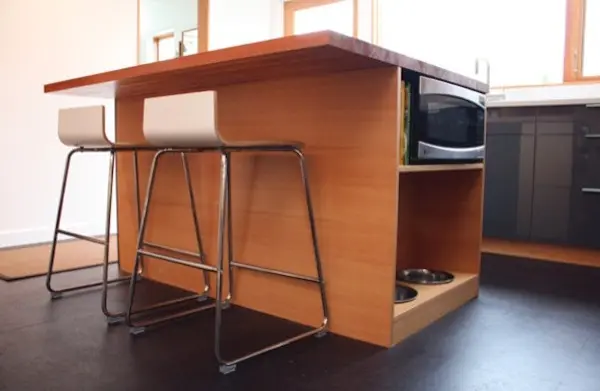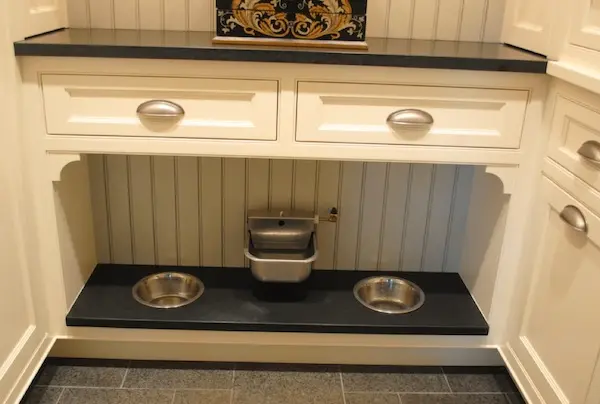 Locul in care il hraniti poate fi in acelasi perimetru cu casuta lui sau il puteti amenaja oriunde acesta are acces usor, unde poate sa vina si sa plece oricand, fara a se lovi de obstacole in drumul sau. Pentru ca bolurile cu apa si mancare sa nu mai fie expuse peste tot prin casa, acestea pot fi integrate in interiorul dulapurilor, incorporate in decorul casei per ansamblu.