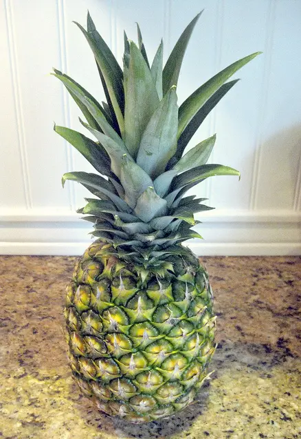 1. Cumparati un fruct de ananas cu tot cu frunze. Cautati unul cat mai proaspat cules care sa aiba frunzele foarte verzi.