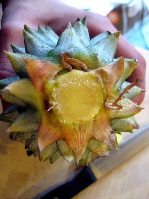 1. Cumparati un fruct de ananas cu tot cu frunze. Cautati unul cat mai proaspat cules care sa aiba frunzele foarte verzi.