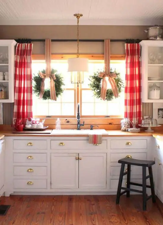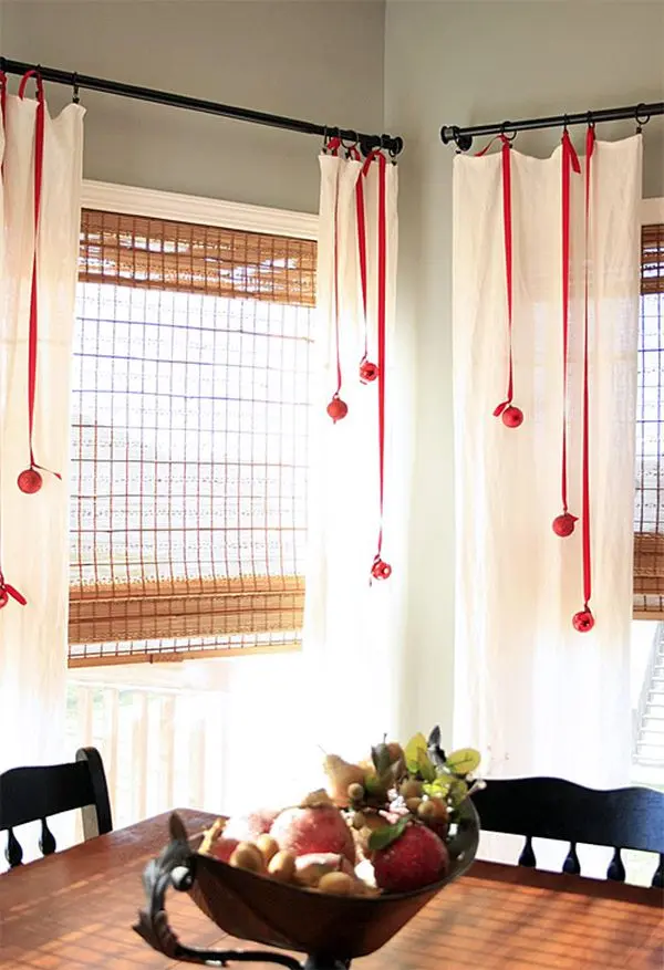 Clasicele coroane din brad sunt decoratiuni de Craciun care vor impodobi frumos ferestrele casei. La fel si fundele rosii cu care veti lega draperiile.