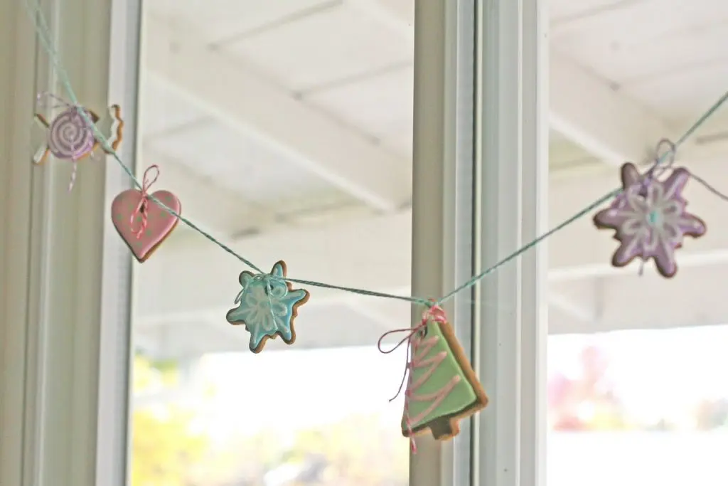 Va place turta dulce? Si noua. Diversele modele pe care le gasiti in magazin in aceasta perioada sunt perfecte pentru o ghirlanda inedita pentru fereastra de la bucatarie sau din camera copiilor. Din categoria ghirlandelor comestibile, puteti folosi si felii de fructe uscate si scortisoara. Trebuie doar sa le uscati din timp.