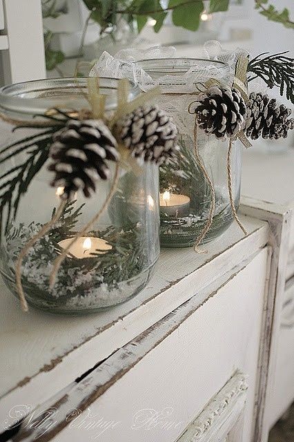 Daca aveti cateva ghivece libere, plantati un con de brad. Adaugati pamant, cateva bucati de muschi si puneti conul in mijloc; legati cu o panglica si gata, aranjamentul de iarna troneaza frumos la ferestrele casei.