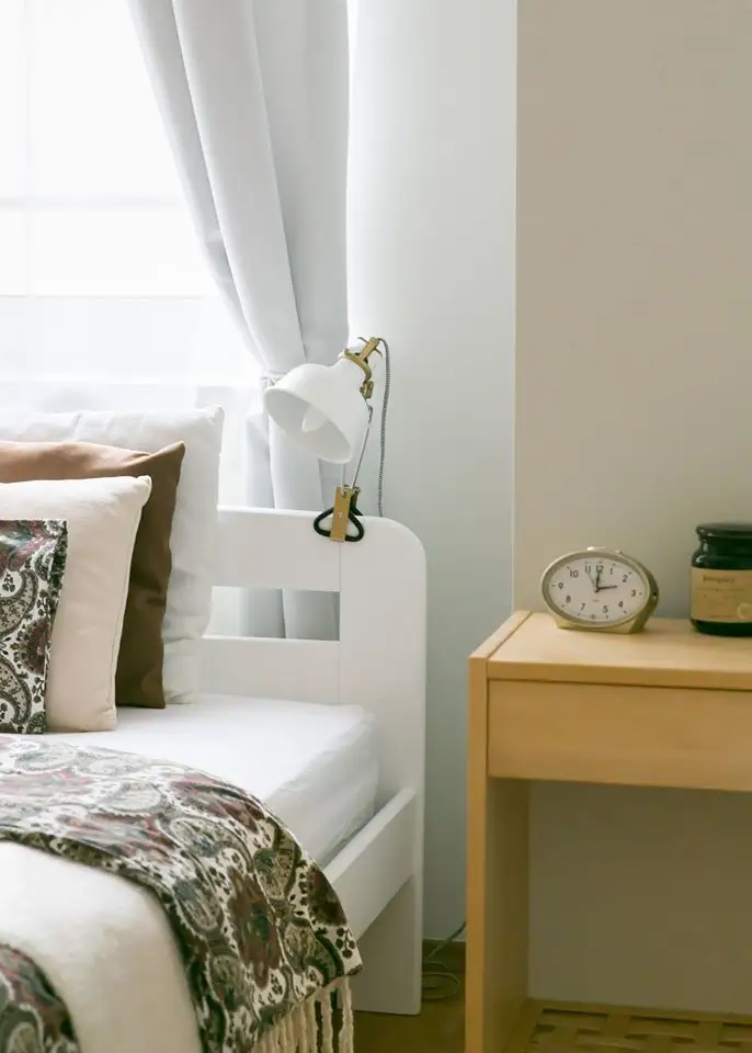 Pentru zona de dormitor, tapetul atrage atentia. Avem astfel un perete-accent cu un imprimeu in nuante potrivite unui dormitor. Patul, o noptiera si o comoda permit spatiului sa respire, modelele alese fiind potrivite pentru suprafata dormitorului. Schimbari pozitive s-au produs si in baie, lumina adecvata si decoratiunile imbunatatind aspectul final.