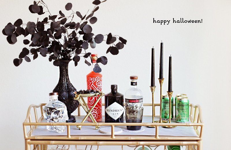 Coloreaza cu spray cu vopsea neagra accesoriile de prin casa. Poti vopsi lumanari, crengi infrunzite sau mici vase ceramice.