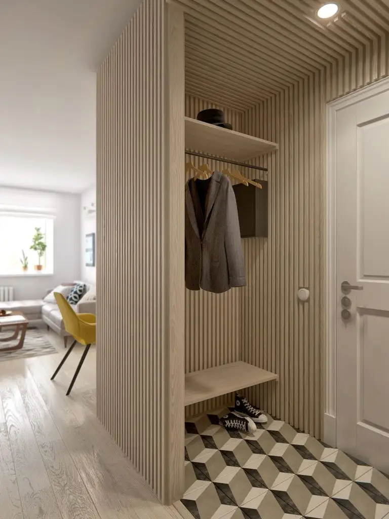 Pentru holurile mai adanci si lungi, se poate lua in calcul amenajarea unui dressing care sa preia o parte din hainele groase de iarna, din cutiile cu pantofi si alte obiecte ce au nevoie de spatii mari de depozitare.