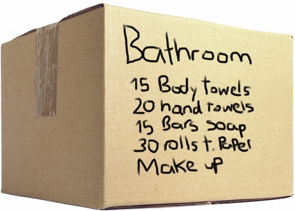 Este o idee buna sa treceti continutul pe fiecare cutie, pentru a evita sa le deschideti pe toate seara, dupa o zi lunga de mutat, cautand un prosop anume.