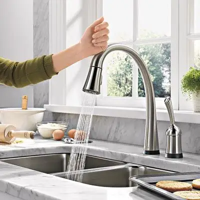 Robinetul de bucatarie cu maner dublu ofera precizie in pornirea jetului de apa, dar control separat pentru apa calda sau rece. Montajul presupune trei sau mai multe gauri in chiuveta sau blat.