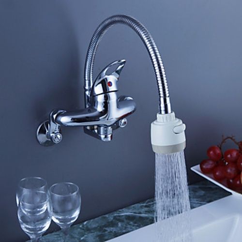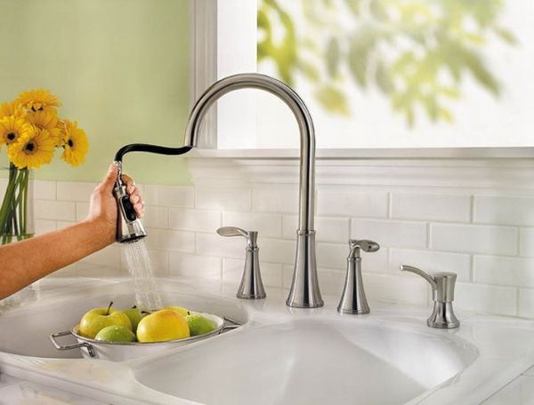 Robinetul de bucatarie cu maner dublu ofera precizie in pornirea jetului de apa, dar control separat pentru apa calda sau rece. Montajul presupune trei sau mai multe gauri in chiuveta sau blat.
