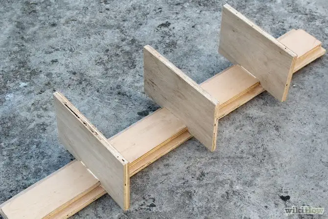 taie lemnul in functe de masuratorile pe care le-ai facut si in functe de cat de mare ai vrea sa fie raftul, pastrand bineinteles proportiile. La final trebuie sa ai trei componente: o parte pe care se vor asambla politele, 3 polite, si 4 parti de sustinere a politelor. Finseaza muchiile partilor taiate cu smirgherl;