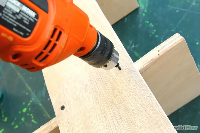 incepe prin a prinde pe partea principala una din cele 4 parti de sustinere, cu cuie mici batute discret pe laterale apoi prindeti prima polita de sus cu holsuruburi. In modul acesta continua si cu celelalte. Fa cu bormasina doua gauri in partea de sus si de jos a raftului pentru a putea fi prins in perete;
