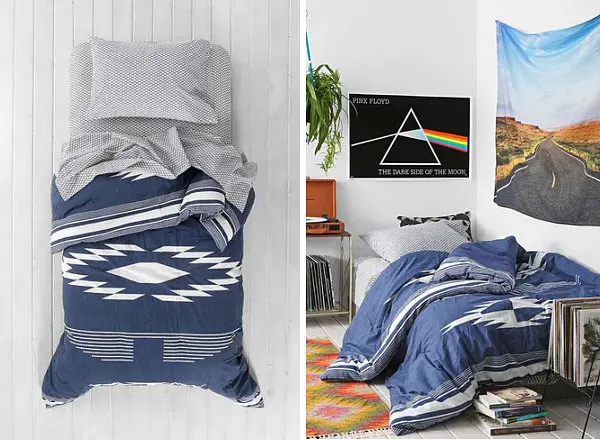 Desi poate nu te-ai gandit la asa ceva, lenjeria de pat este importanta pentru starea de spirit si pentru un somn de calitate. Asa ca alege lenjerii cu modele geometrice, puternic colorate pentru starea ta de bine. Daca patul si spatiul iti permite, alege si cateva perne decorative pe care le poti personaliza chiar tu daca doresti, sau alege alte variante disponibile.