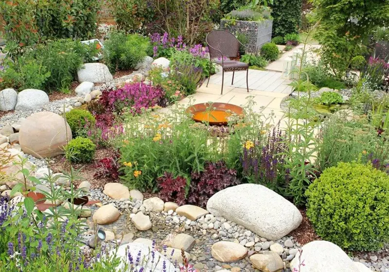 Combina pietrele cu diverse plante decorative
