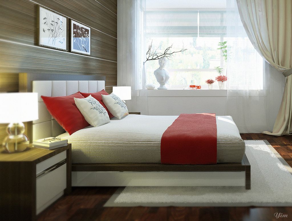 Amenajare de dormitor cu un perete-accent dicret conturat