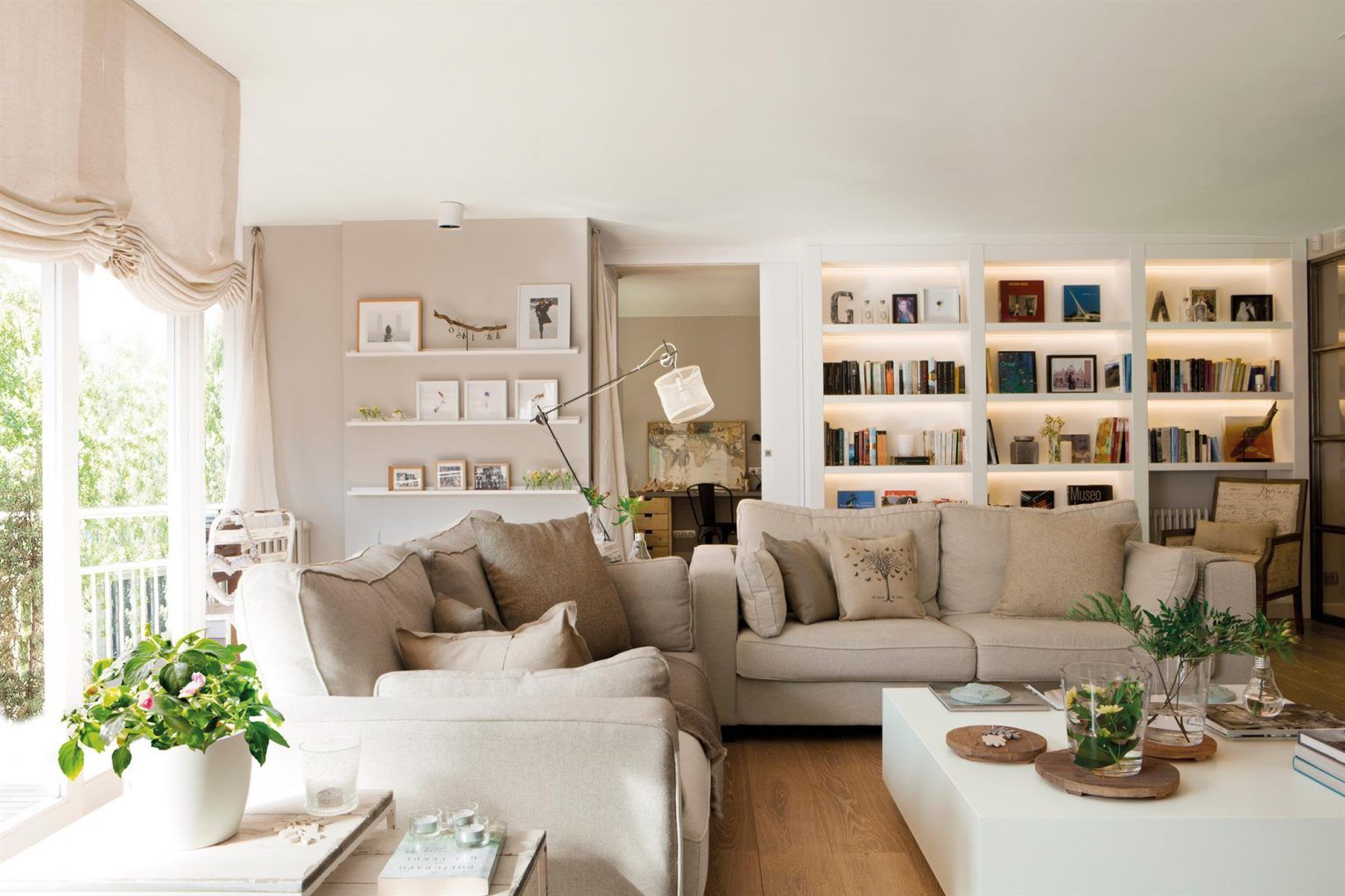Corp de biblioteca inalt pentru o mai buna depozitare a lucrurilor. Vezi si lampadarul pentru o lumina ambientala placuta!