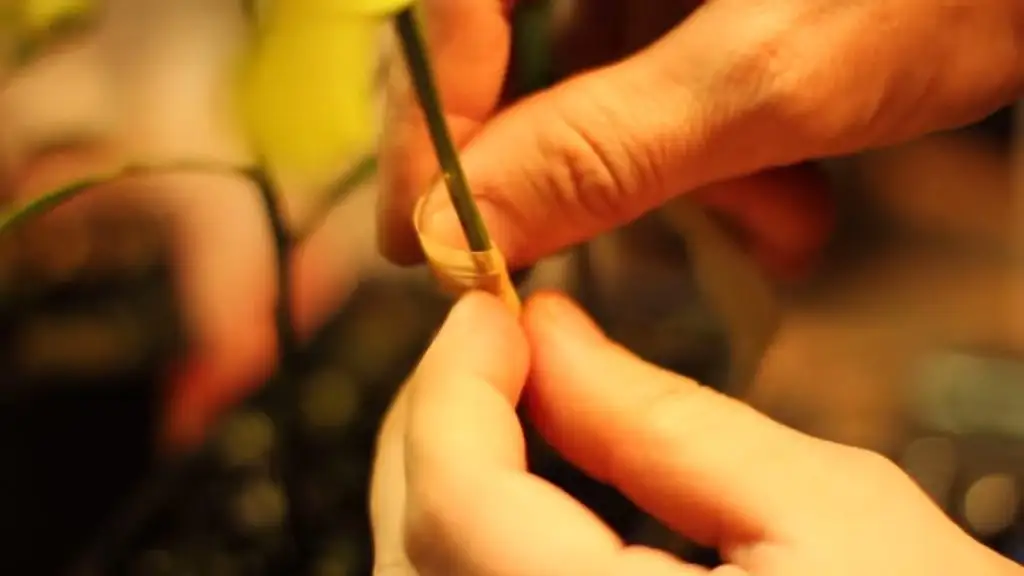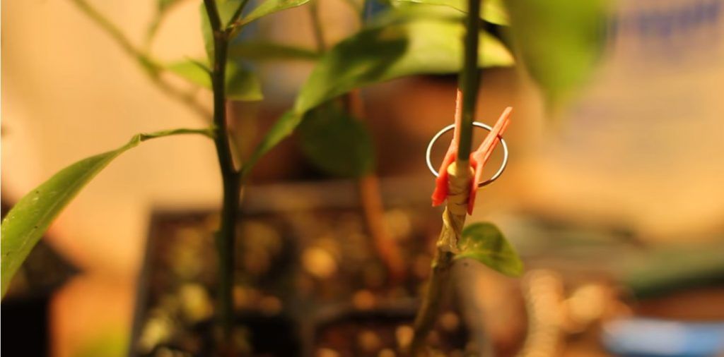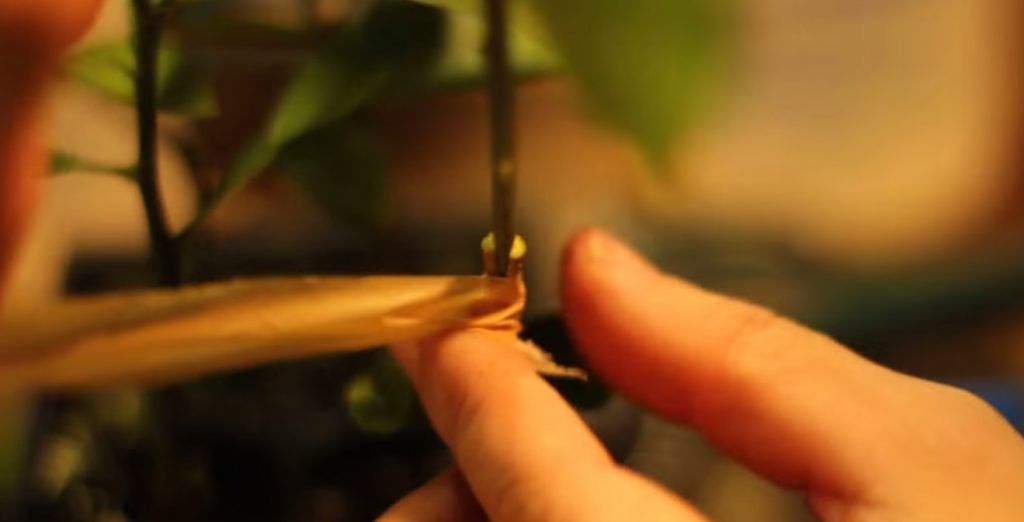 Peste bandaj se prinde un carlig care sa tina cat mai strans puctul de altoire.