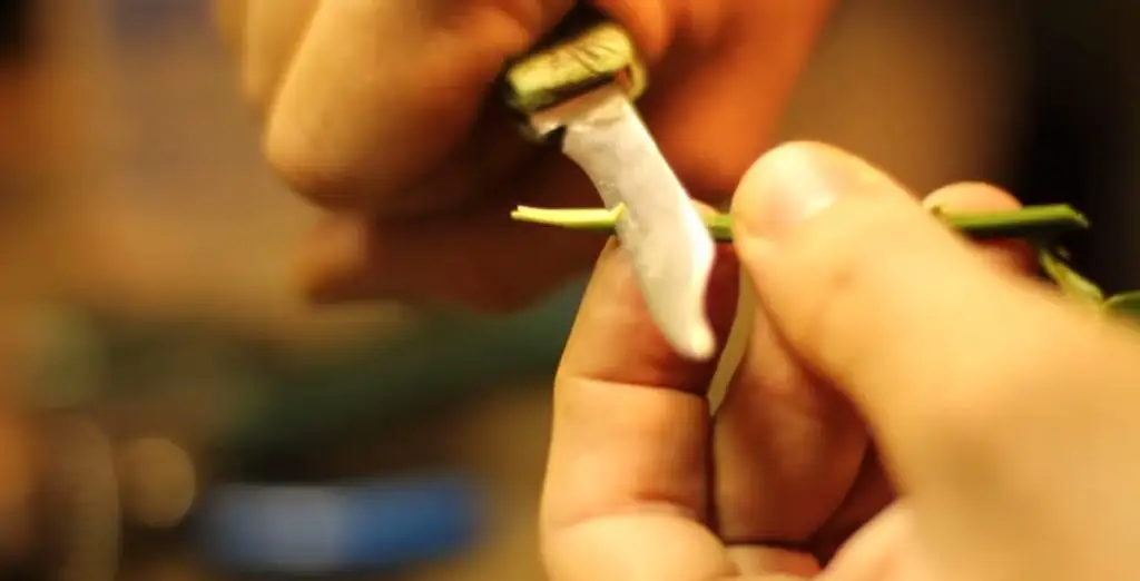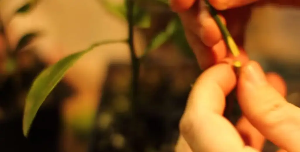 Taiati planta pastrand o lungime a trunchiului de aproximativ 30 de cm. Pentru taire folositi un cutit foarte ascutit sau un cutit special pentru altoire.