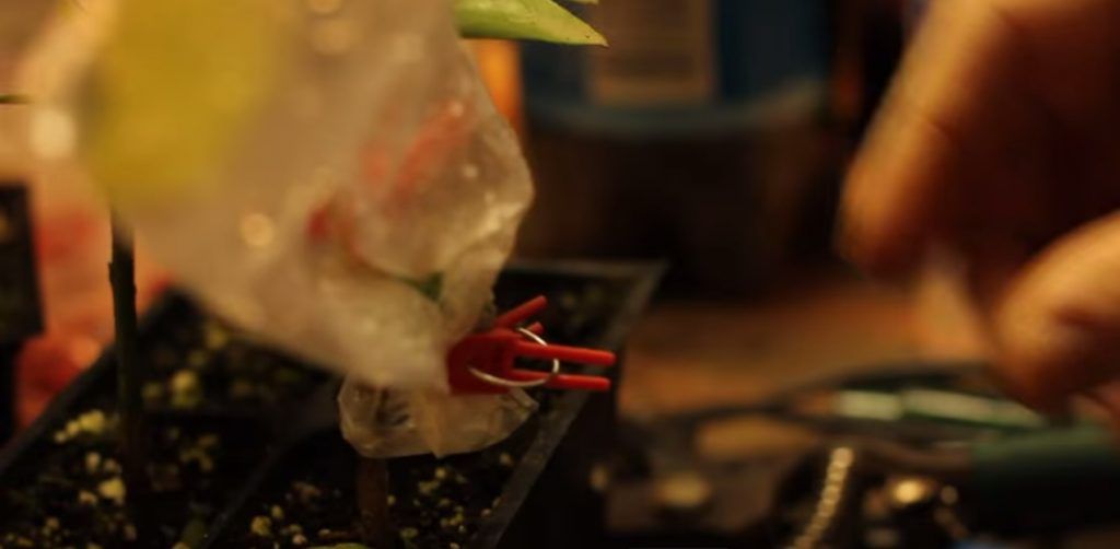 Cand observati ca altoiul da semne ca s-a prins puteti indeparta punga.