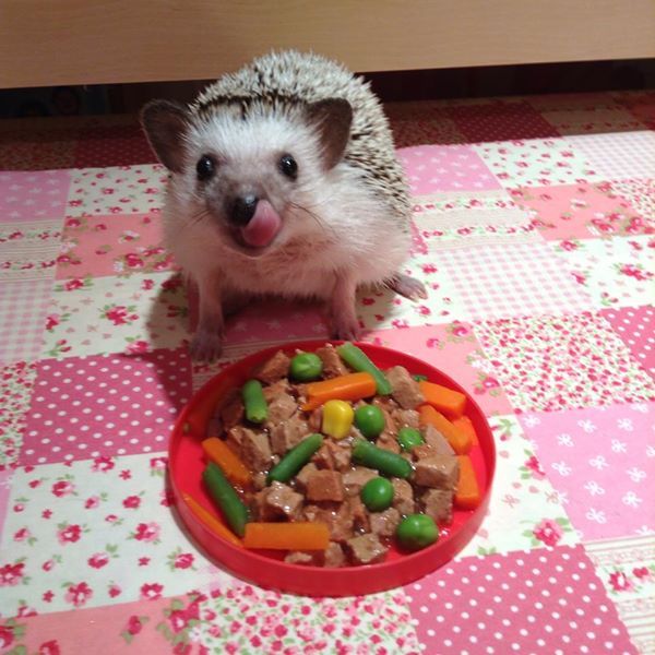 In ceea ce priveste hrana, ariciul este un animal insectivor, dar nu este pretentios va manca cu placere mancare pentru pisici si bucatele de fructe sau legume. Deoarece fructele au mult zahar, este bine sa nu le consume des daca nu este un specimen activ. Ariciul nu are nevoie de mai mult de 70 de calorii zilnic.