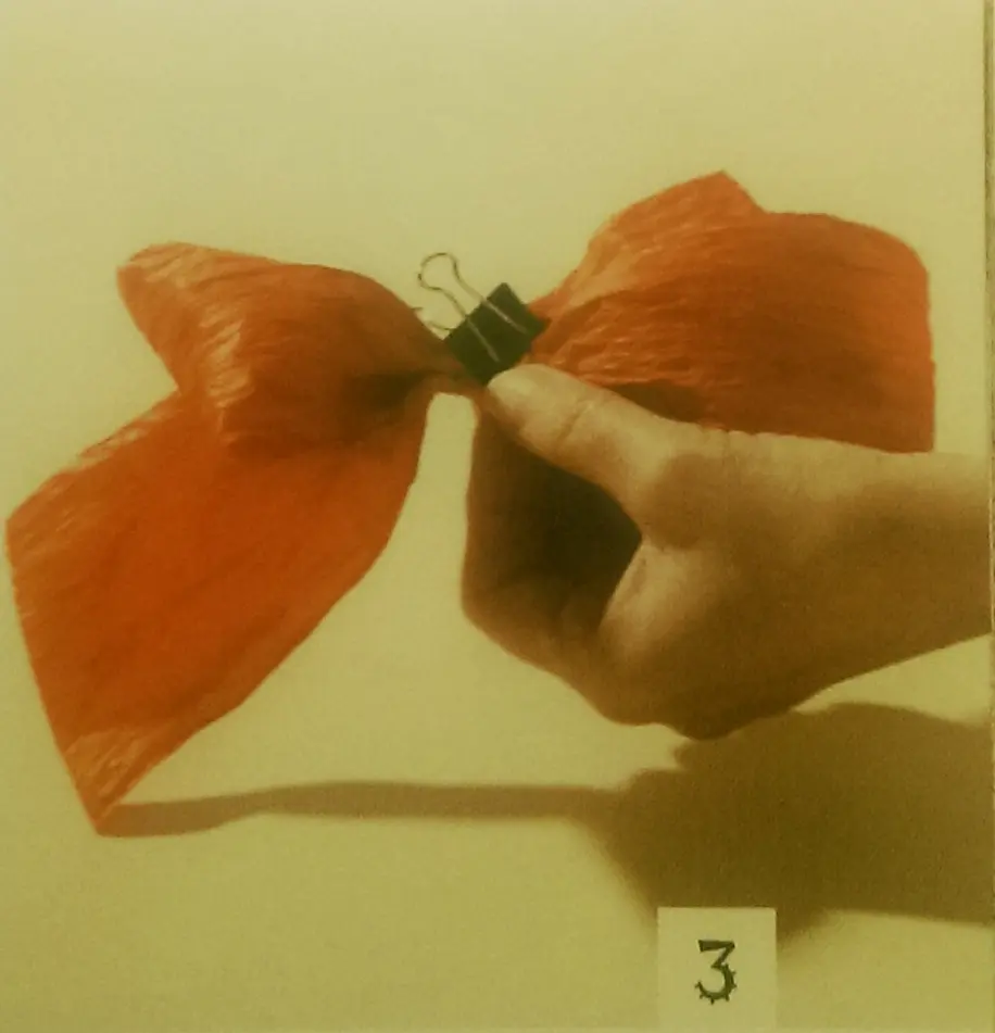 2. Daca dorim o funda mai sofisticata, dupa pasii de mai sus, fundita nu se leaga pe mijloc ci se prinde cu o clama, dupa cum puteti vedea in galerie.