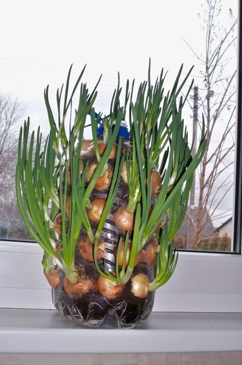 Incepi prin a taia gatul flaconului, dupa care, cu ajutorul foarfecii vei face niste gauri in el; mai departe aranjezi fiecare bulb de ceapa in golurile pe care tocmai le-ai facut si te asiguri ca sunt foarte bine incadrate in perimetrul respectiv. In continuare vei adauga cate un strat de pamant si unul de ceapa; repeti procesul pana in varful sticlei de plastic.