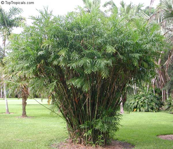 Deschide GaleriaPalmierul de tip bambus este intalnit in natura la umbra altor copaci, in junglele tropicale. Creste sub forma unui manunchi de tulpini grupate, fiecare din ele avand pe intreaga lungime inele, precum cele ale bambusului, de unde si denumirea sa. Fiecare tulpina este acoperita de o coroana deschisa de frunze, acestea avand o lungime de circa 50 de centimetri. Inaltimea pe care o atinge de obicei este de aproximativ doi metri, dar in conditiile potrivite, de exemplu de umiditate, luminozitate si semi-umbra, poate atinge peste trei metri.
