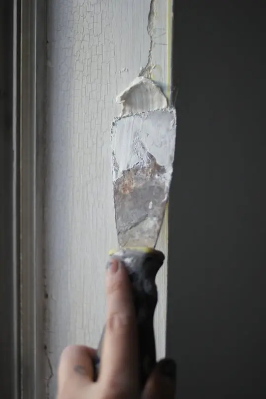 Pasul 1. Da cu smirghel intreaga zona afectata de fisuri sau care prezinta crapaturi sau inlatura cu spaclul vopseaua desprinsa pentru a netezi peretele.