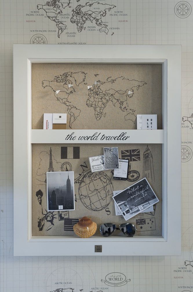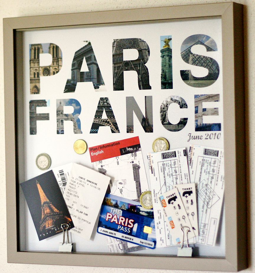 Poate ca tocmai v-ati intors dintr-o frumoasa calatorie si ati pastrat mici suveniruri. Aduna laolalta bilete de avion, biletele de la intrarea la muzeu, insigne diverse sau magneti de frigider, vederi, o harta cu tara vizitata, o pietricica "furata" de pe acele meleaguri.