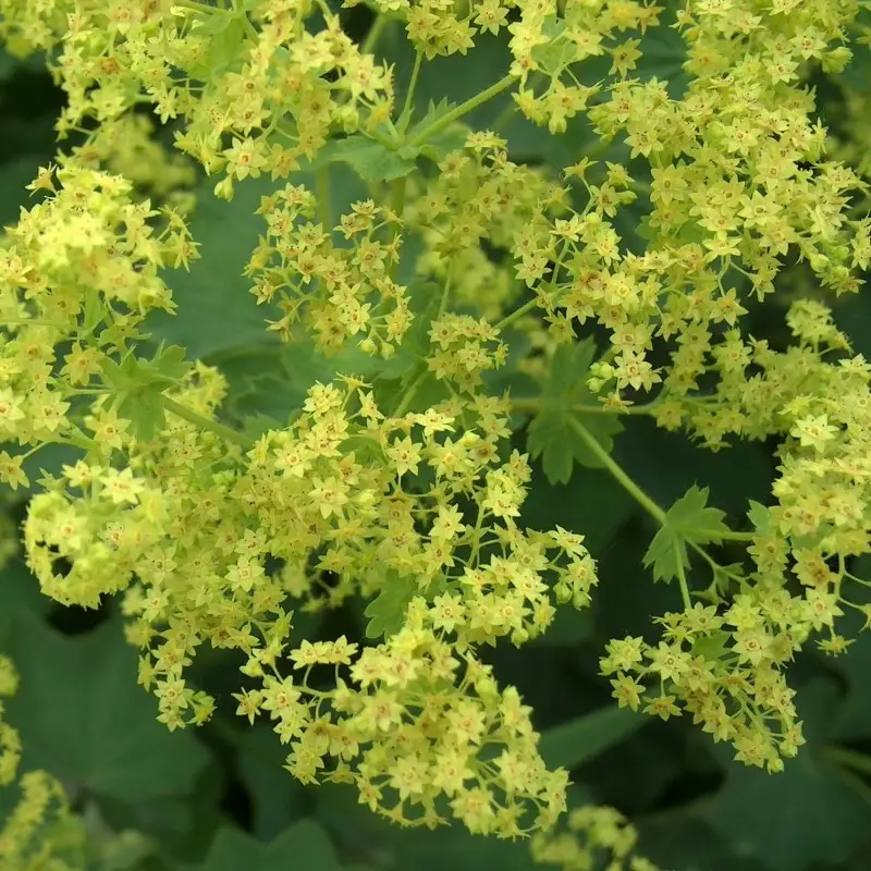 Crețișoara (Alchemilla mollis) este o alegere de top. Este o plantă iubitoare de umbră care oferă o acoperire excelentă a solului pentru partea frontală a bordurii.
