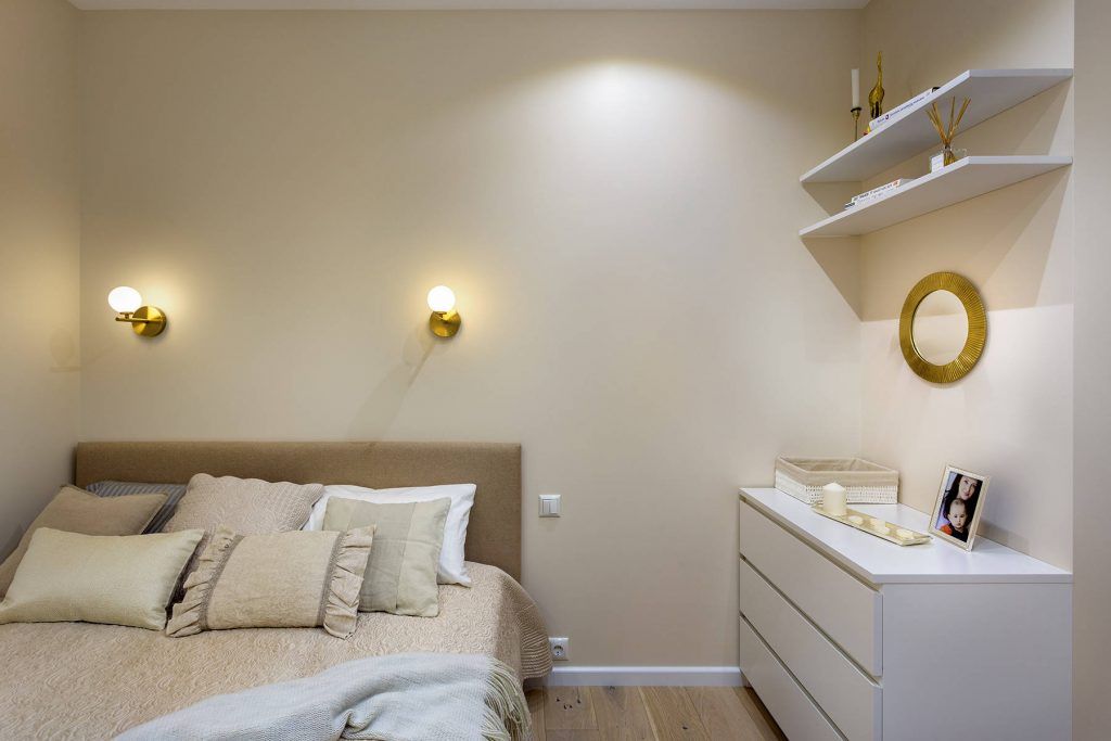 Dormitorul parintilor are doar 8,5 metri patratisi o amenajare pe masura. Suprafata a permis integrarea unui pat matrimonial, a unei comode cu sertare si a doua polite pentru mici decoratiuni sau carti, iar nuanta neutra cu care au fost zugraviti peretii contureaza un ambient placut, relaxant.