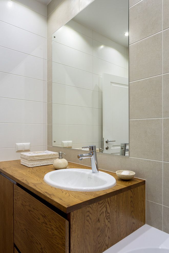 Si baia a fost amenajata pe cat de functional posibil; s-a reusit integrarea unei cazi de baie, a toaletei, si a unor spatii de depozitare atat sub lavoar (unde a fost instalata si masina de spalat rufe), dar si deasupra bazinului incastrat sub forma unor rafturi simple.
