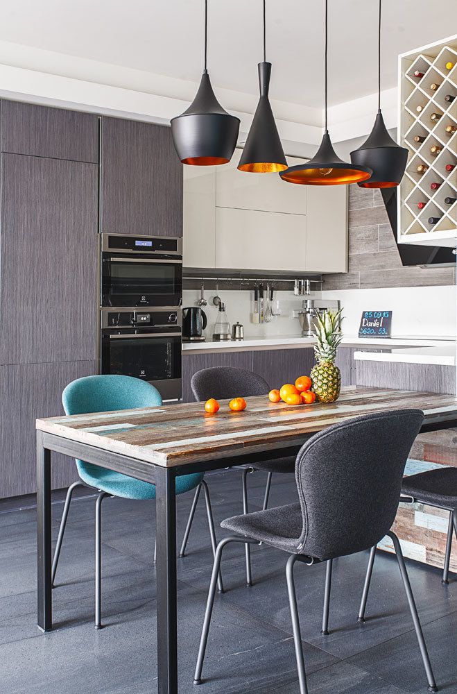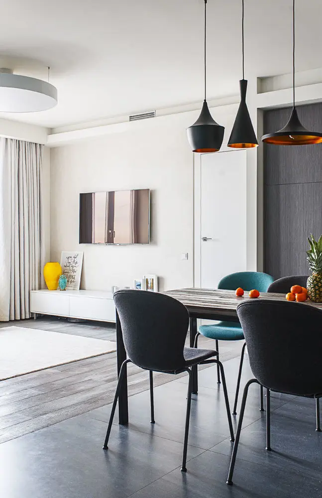 Locul de luat masa pus in valoare cu ajutorul corpurilor de iluminat suspendate