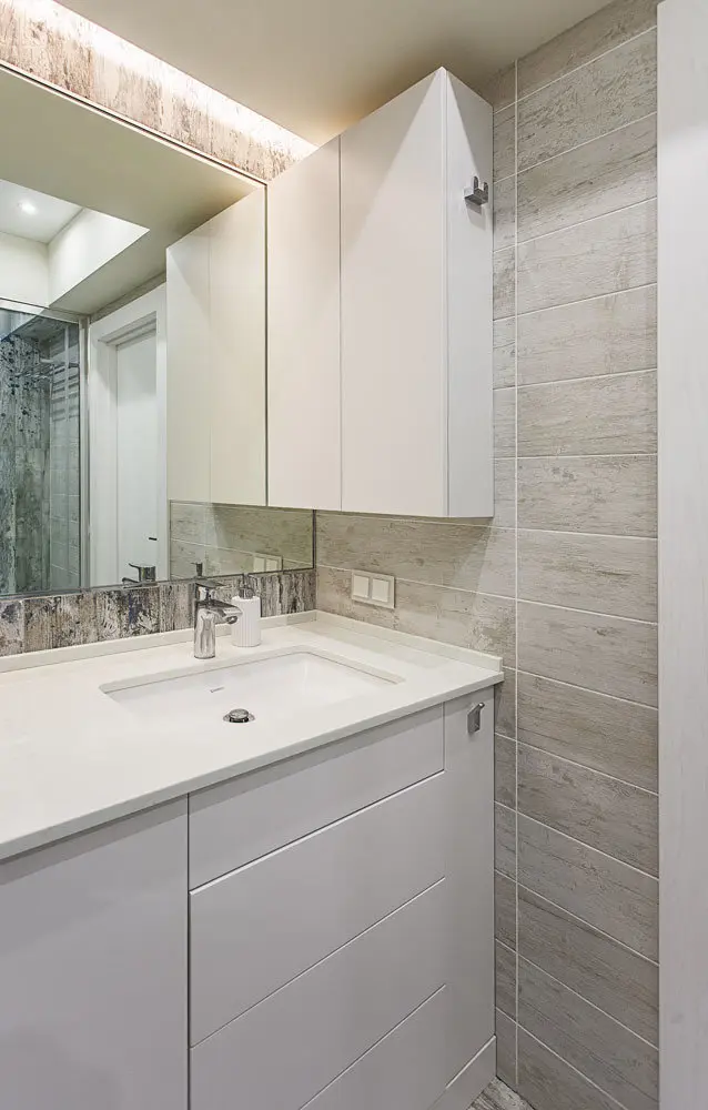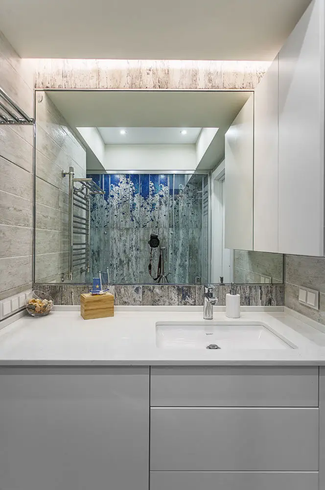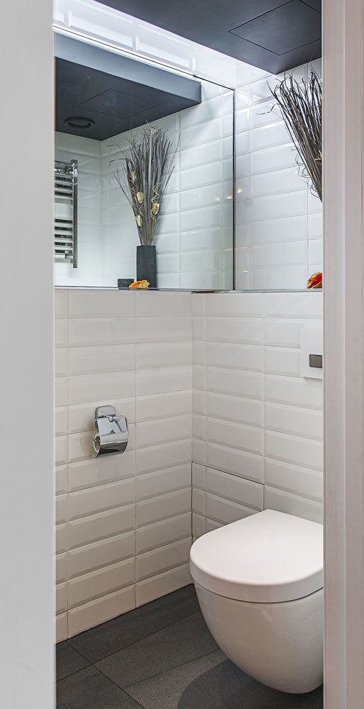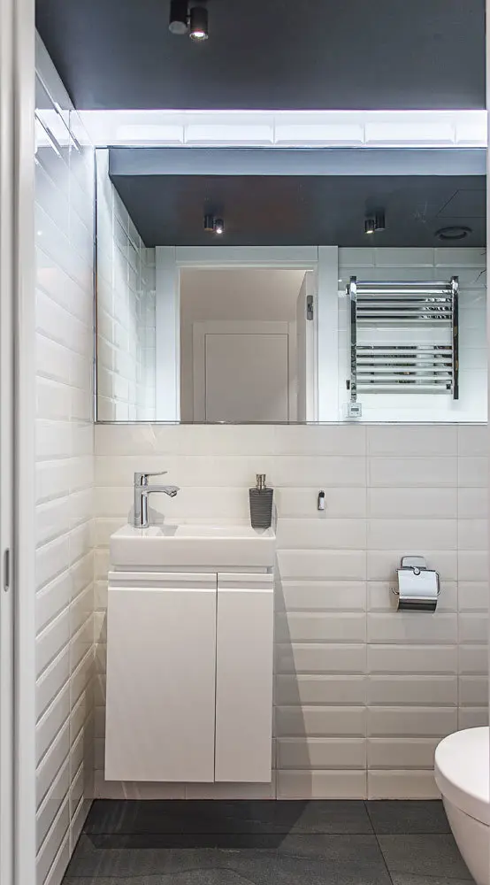 Oglinzile maresc spatiul in acest spatiu mic al baii de serviciu