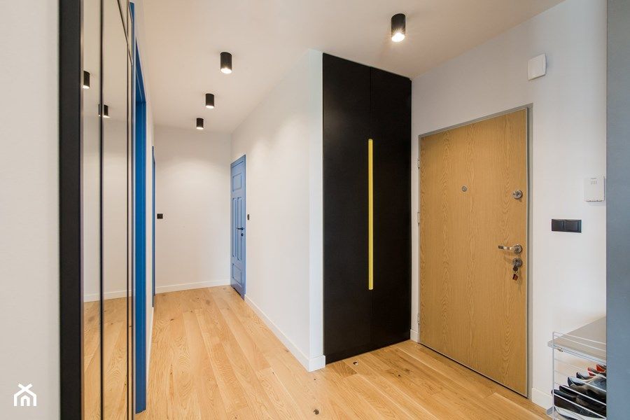 Camerele sunt astfel impartite pentru delimita zonele de zi si de noapte, holul oferind o zona generoasa pentru depozitare variata. Spatiul pare astfel mai fluent. Trecerea dinspre living spre bucatarie este marcata la nivelul pardoselii prin intreruperea parchetului si inlocuirea lui cu placi ceramice decorative.