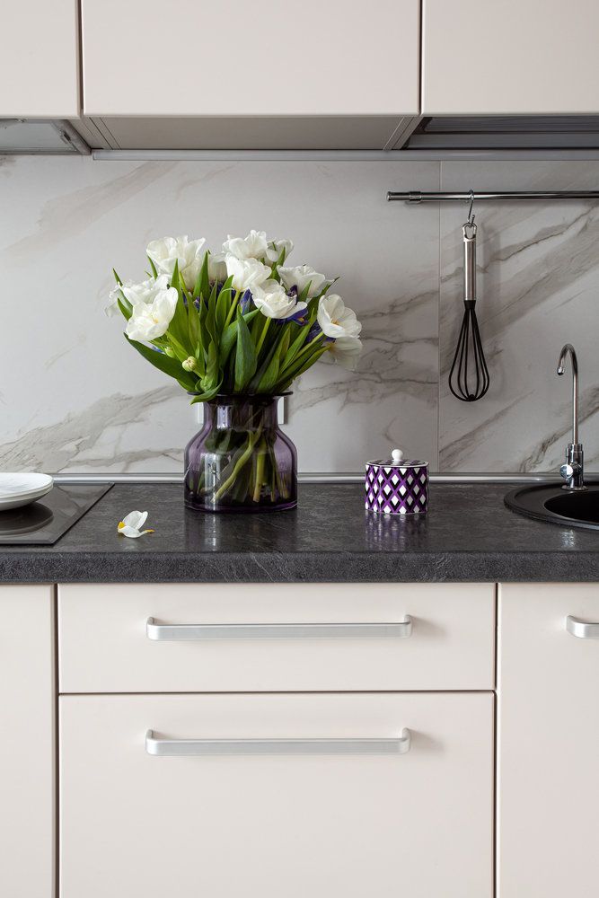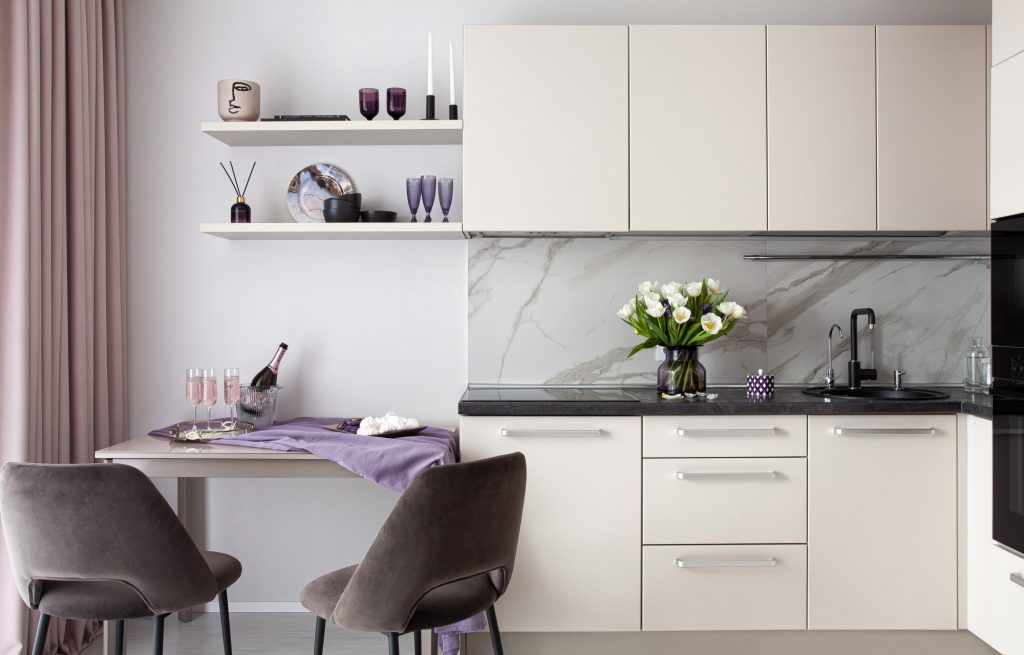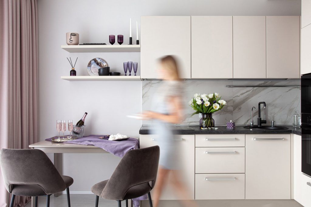 Amenajarea spatiului compact propusa de echipa de arhitecti imbina armonios functionalul cu eleganta. Designerii au reusit cu succes sa mareasca vizual spatiul existent si sa gaseasca solutii de depozitare eficente, fara sacrificii estetice.