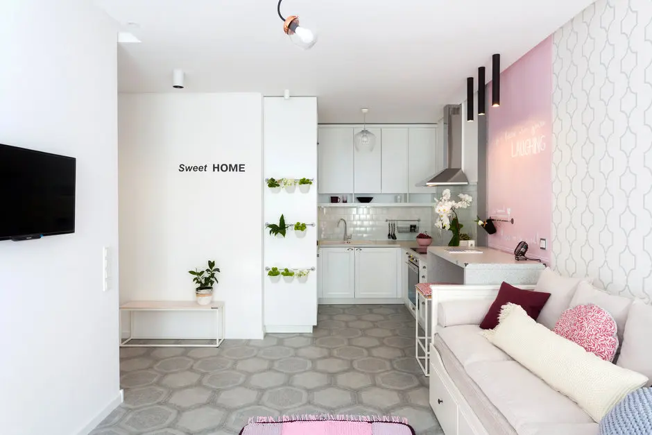 Deschide Galeria Pentru astazi, ne-am propus sa te inspiram cu tuse romantice, feminine conturate in spatiul unui apartament de 2 camere cu o suprafata de 43 metri patrati. Irina Sazonova este designerul care s-a ocupat de aceasta amenajare si iata ce a iesit.