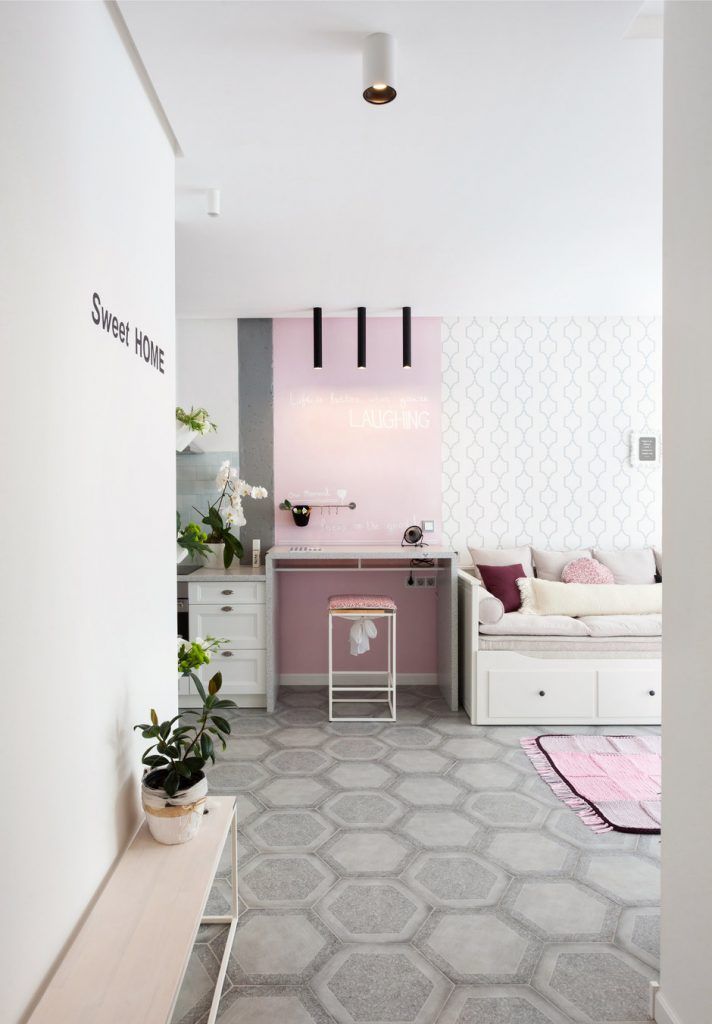 Deschide Galeria Pentru astazi, ne-am propus sa te inspiram cu tuse romantice, feminine conturate in spatiul unui apartament de 2 camere cu o suprafata de 43 metri patrati. Irina Sazonova este designerul care s-a ocupat de aceasta amenajare si iata ce a iesit.