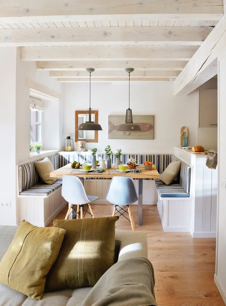Locul de luat masa conceput ca un spatiu pentru familie si prieteni confortabil si primitor cu tuse mediteraneene