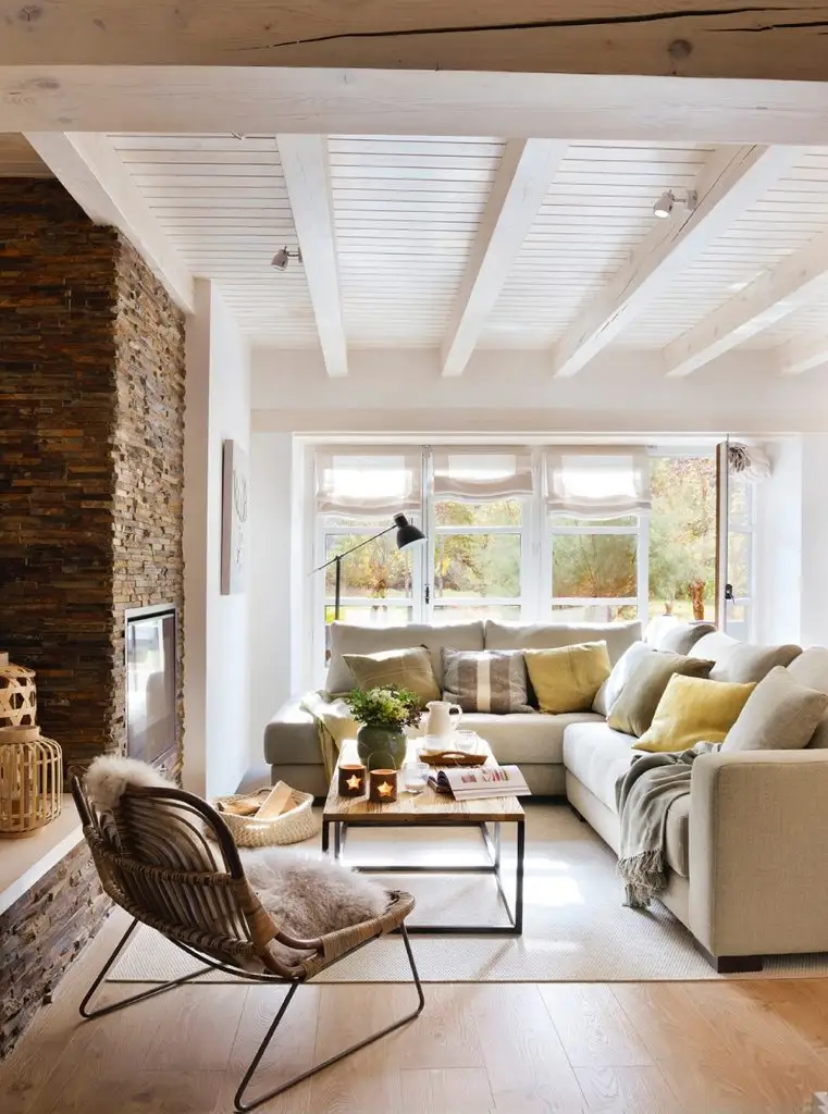 Spatiu luminos cu alb si tonuri neutre pentru living