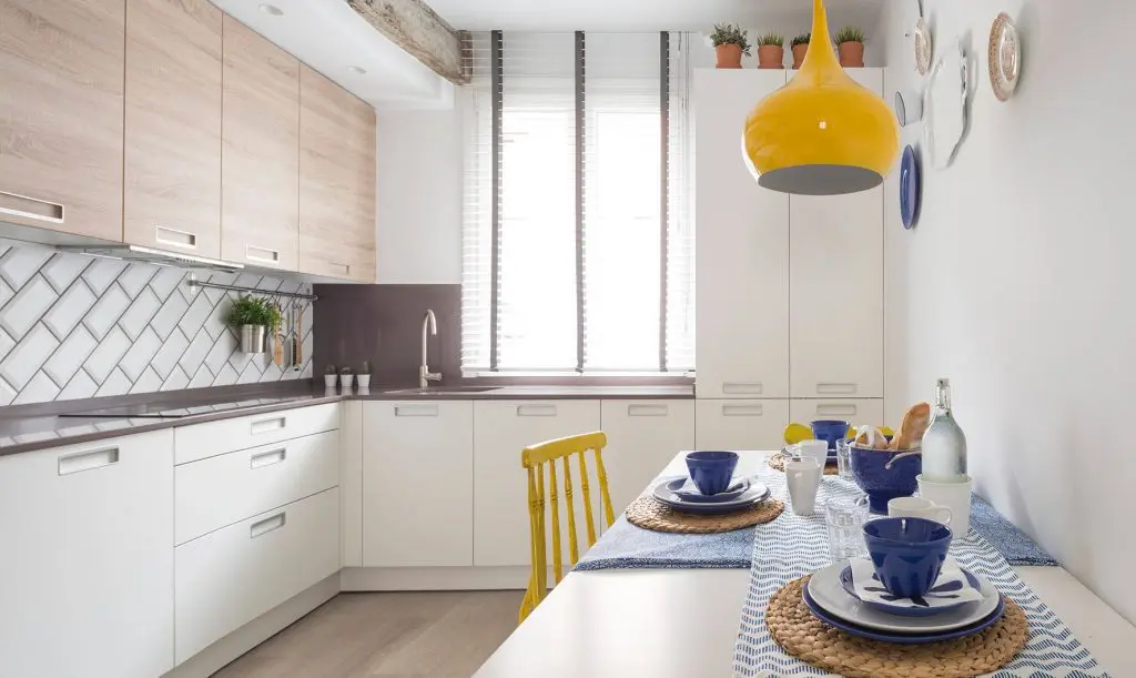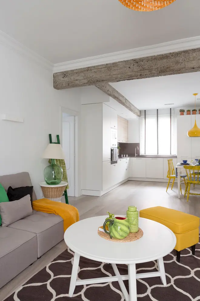 Otomanul, paturica, pernele decorative sau corpul de iluminat din bucatarie, toate galbene, reprezinta doar un exemplu in acest sens.