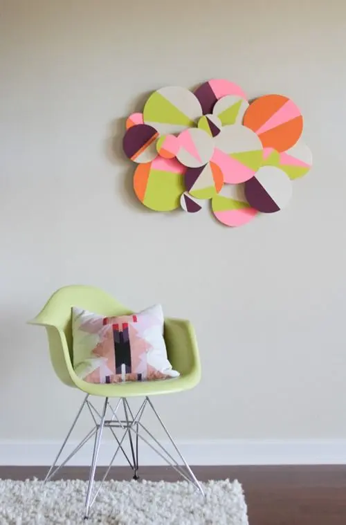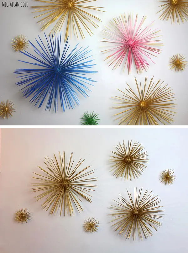 Unul dintre proiectele din galeria alaturata a fost realizat prin introducerea in perete a unor cuie. Aceste cuie au fost unite intre ele cu ajutorul unor sfori colorate iar rezultatul arata foarte bine.