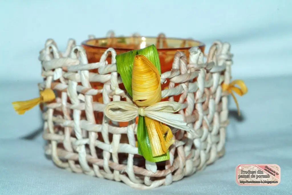 suport pentru lumanare din panusi de porumb