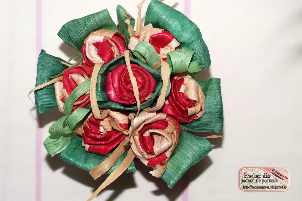 buchet flori din panusi de porumb