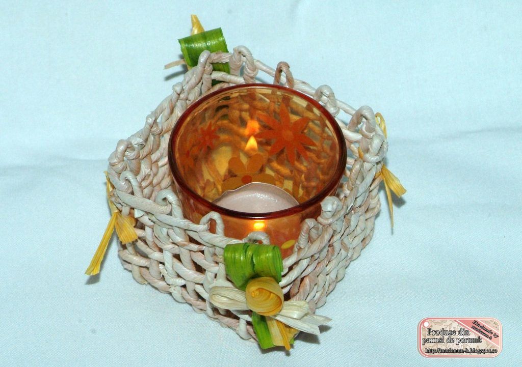 suport pentru lumanare din panusi de porumb