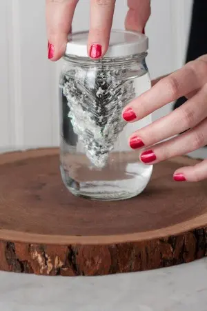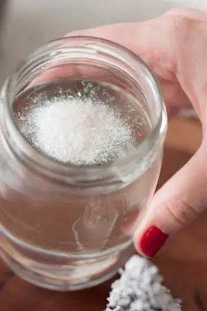 Lipiti-l si lasati sa se usuce. Umpleti apoi borcanul cu apa distilata. Apoi adaugati o picatura de glicerina; va fi suficienta pentru un borcan de 400 de grame. Este important sa nu folositi prea multa pentru a nu ingrosa apa.