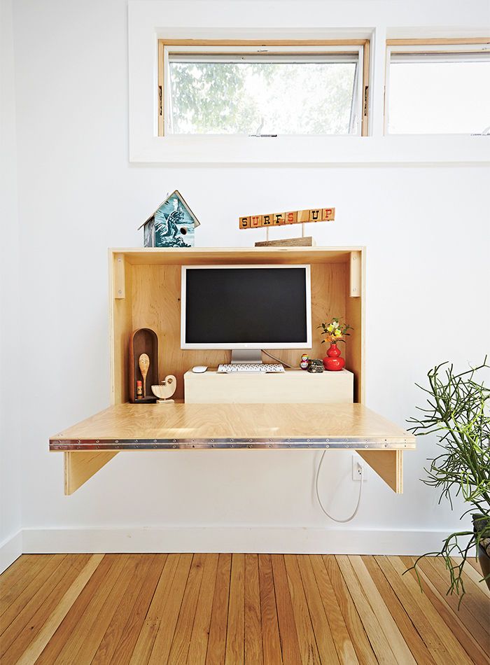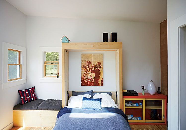 Una din provocarile amenajarii a fost construirea baii, iar pentru restul s-au folosit materiale reciclate. Majoritatea pieselor de mobila sunt rabatabile, ceea ce duce la o organiare mai buna a spatiului de locuit.