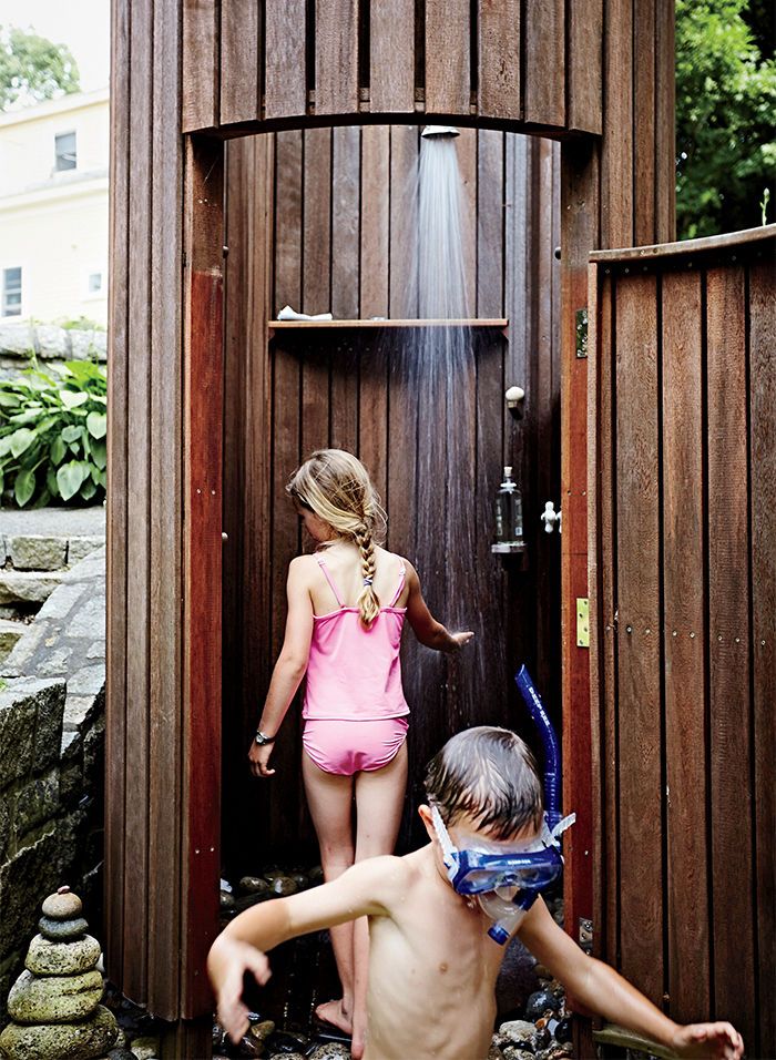 Din exterior se poate vedea o constructie moderna din lemn, pe o platforma ale carei trepre sunt ideale ca loc de socializare al intregii familii. Tim si Meg descriu construirea acestei dependinte ca pe un proiect de familie care sa fie un experiment pentru a vedea cum s-ar descurca daca ar trebui sa ia viata de la zero.