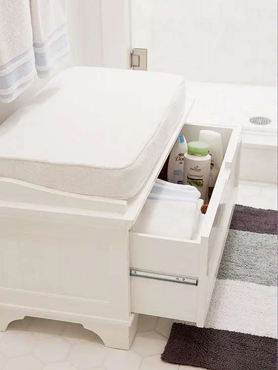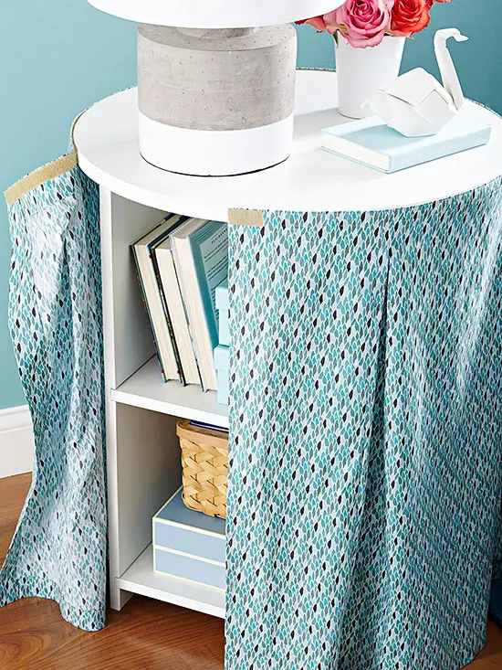 Nu toate obiectele ar trebui sa fie pastrate la vedere. Poti folosi o fata de masa cu un pattern vesel care sa iti imbrace masa si sa ascunda, in acelasi timp, rafturile sau cosurile integrate in ea.