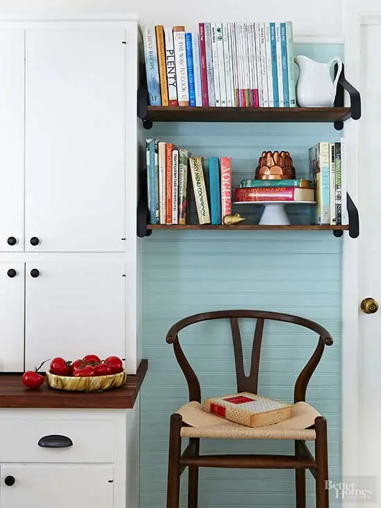In special in spatiile mici, poti monta rafturi inguste pe linie verticala pentru a profita de fiecare centimetru patrat din locuinta ta.