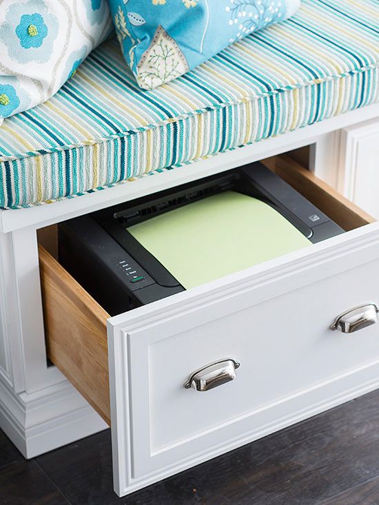 In camerele mici, suprafetele de lucru ar putea fi transformate in spatii temporare. In loc sa te impiedici de device-uri sau de imprimanta in fiecare zi, le poti ascunde in sertare de dimensiuni potrivite.